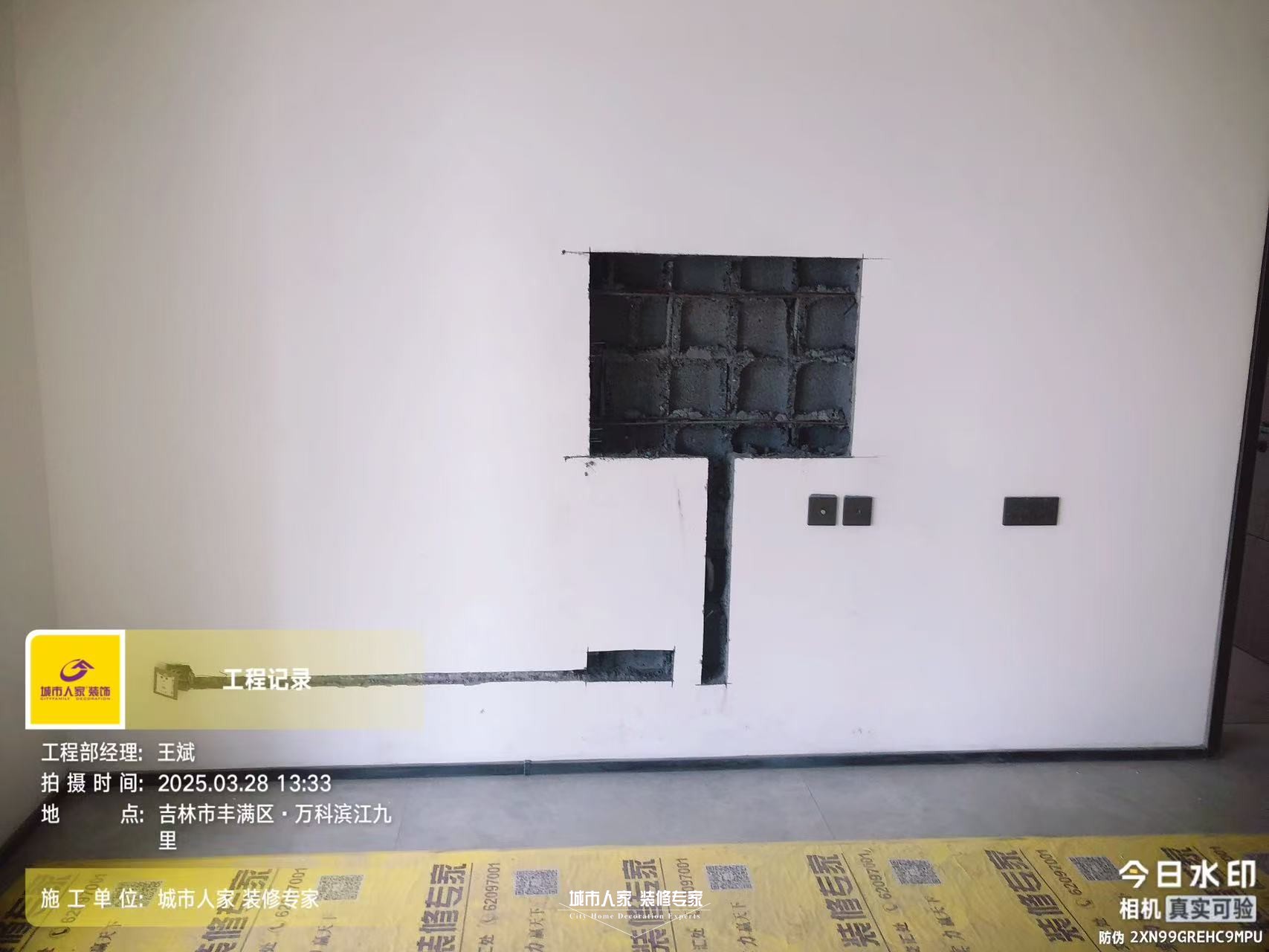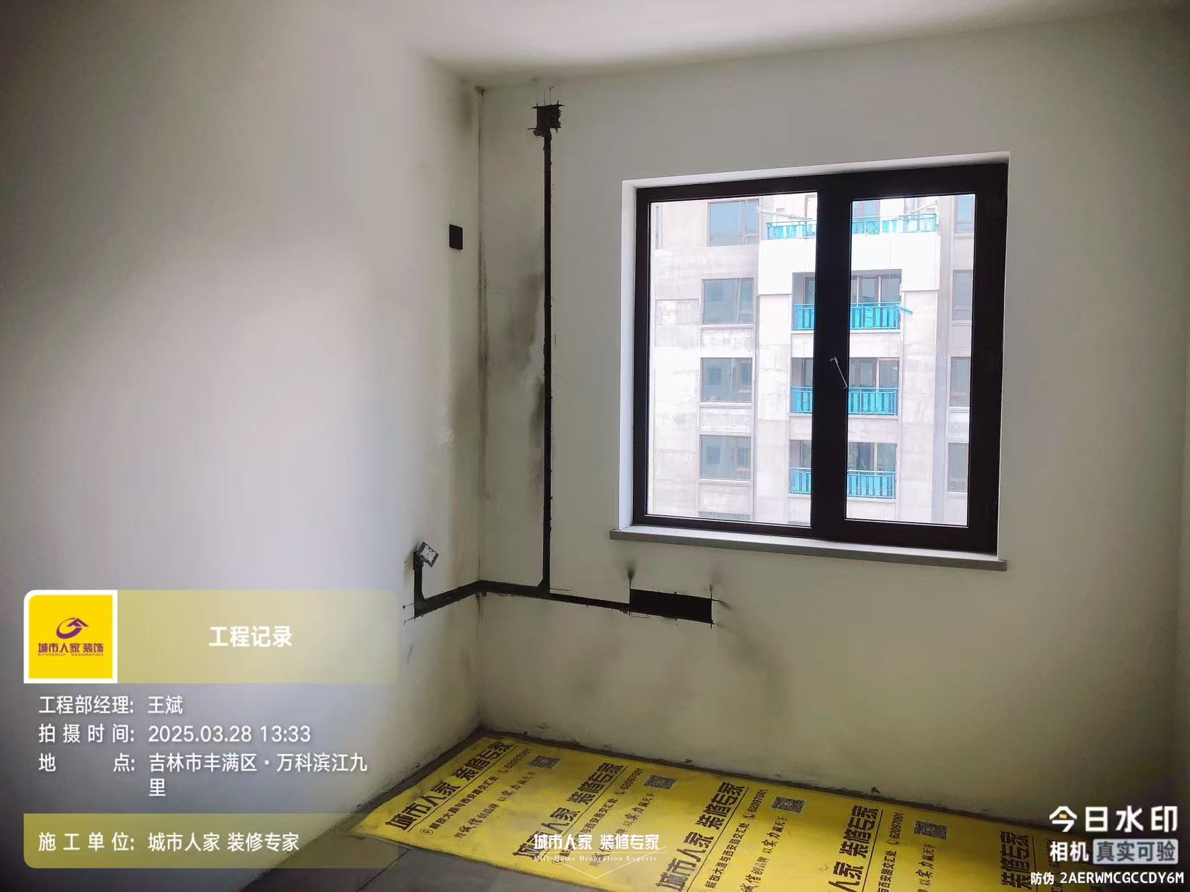 油工驗(yàn)收:墻面打磨處理、頂面順平處理、地面上返300mm找平、乳膠漆滾涂?jī)杀槭┕?、乳膠漆滾刷均勻、線槽石膏填平、粘繃帶處理